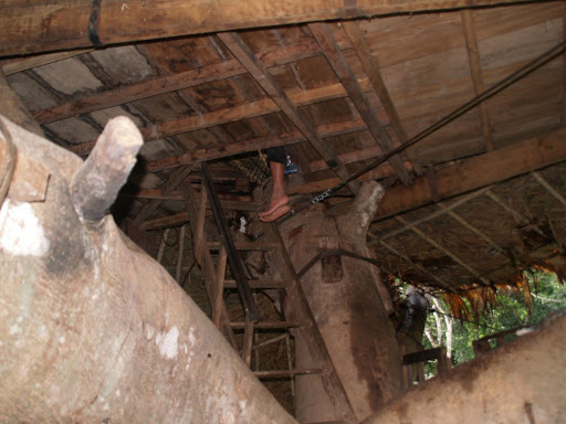 After dinner I noticed many pairs of green eyes on the walls of the hut. Upon closer inspection I discovered the eyes belonged to VERY large spiders. At about 8:30 pm the RATS CAME OUT TO PLAY!!! We saw two very large rats scurry across the inside of the roof! We decided it was time to go to bed as we could be safe inside our “tents” which consisted of a few dirty mattresses with a filthy, mildewed sheet dangling from above, which when tucked under the mattress served as a mosquito net. The bed was to sleep three; however, we didn’t want Jill to have to sleep alone at the top of the treehouse where all the rats were spotted! So Jill joined our “tent” and we raced to secure the mosquito net cloth tightly under the mattress to prevent and unwanted intruders. There was no time for hygine when rats are involve, even if we had had running water! All of us but Jill climbed into our sleep sacs avoiding any contact with the nasty sheets and pillows. We were all exhausted from the days hike; however, we found it quite hard to fall asleep with all the noises of the jungle and the rats that were scurrying all around us! At one point the rats were having a dance party on top of our “tent” and we could hear them and feel them jump on the sheet and run around! I think they would even jump from the level above us and land on top of our tent! I must have dozed off a little but I awoke to one of my frequent hallucinations which was two very large spiders dangling above my head. While I have been known to hallucinate and do crazy things in my sleep before, these events have intensified since I have begun taking my malaria pills! I screamed out and threw my sleeping sac over my head, which resulted in Nicole and Jill jumping on top of me and Jill screaming out about a rat she saw brush past the tent. I couldn’t speak and everyone thought there was something alive in our tent so we were all freaking out! Turns out there was nothing inside but still plenty of wildlife outside the tent. We didn’t sleep much.