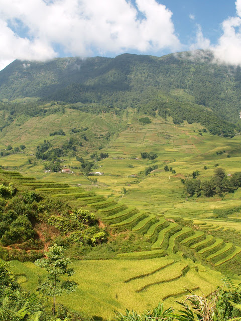The following day turned out to a more intense trek with even more beautiful views to be seen! Again, somewhat tarnished by the HUGE posse of village women that intercepted us as we climbed out of the van and followed up for the ENTIRE 6 hour trek! When I saw the huge group of women (there were 6 people on our tour and about 30 village women meaning each of us were surrounded by 5 of them at a time)! I seriously considered getting back in the van as I knew it was going to be annoying. And annoying it was. They stuck with us the entire trek, touching you, starring at you, begging you to buy stuff. I felt a little bad about ignoring them, but I knew from experience that the minute I started talking to one of them it would turn into a discussion of buying stuff and that is not why I was in Sapa! I came to Sapa to trek through the hills and valleys and see beautiful rice terraces and hopefully observe villagers from a distance as they went about their daily lives. I did not come to Sapa to be accosted by local women and pestered nonstop! I was very annoyed and decided the only way I would make it through the day was to put in my iPod and try to tune out everyone around me and try my best to enjoy the views. And such AMAZING VIEWS were all around to be seen!
