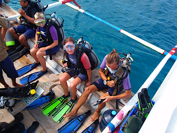 I was mostly nervous because I knew I would be going down further than I ever had before and with divers that were much more experienced than me. Because we dove down further, I was able to see things I have never seen before! We saw a Moray eel, pipefish, a blue spotted ray, and five HUGE parrot fish…they were at least 5 feet long and by far the biggest fish I have ever seen! At one point I looked at my gauge and saw we were down 25 meters (82 feet) below the surface, which is twice as far as I have ever dove before! I was really enjoying the dive up until I got very low on air. Once a diver’s air supply drops down to 50 bar you are suppose to begin coming up to the surface. I signaled to Steve that I was at 50 bar but we continued to dive and it didn’t seem as if he was going to take us up anytime soon. I started to get very nervous, and as a result I began to breath more rapidly which resulted in shortness of breath and using up my remaining air more quickly. As the boys teased me later, I “went mental” and started freaking out a bit and I decided to go to the surface on my own. By the time I had made it to the surface I was completely out of air! If necessary, I could have shared my buddy’s air supply but I imagine he was pretty low too. In my panic, I completely neglected to do a proper “safety stop” in which I would have hovered at a higher level for a few minutes in order to allow my body to properly decompress. As a result, I felt a bit ill later in the night.